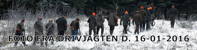 TSJ afholdte deres sidste drivjagt i denne sæson lørdag den 16.01.2016. 30 jægere og hundefolk var mødt frem til jagten, hvor vi skulle drive fire såter. Det var en dejlig vinterdag, så der var store forventninger.